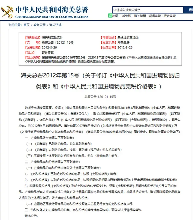 參照《中華人民共和國(guó)進(jìn)境物品完稅價(jià)格表》和《歸類表》。
