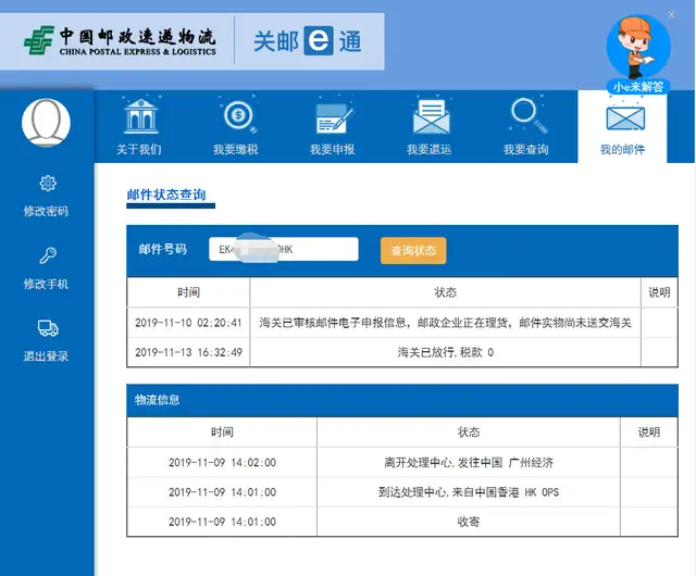關(guān)郵e通支持澳門e特快DDP模式下的海關(guān)清關(guān)軌跡查詢,稅金查詢,繳稅,處理異常,同時(shí)還集成了郵政物流軌跡。全程可追蹤,保證真實(shí)軌跡。同時(shí)支持微信公眾號(hào),支付寶公眾號(hào)處理。